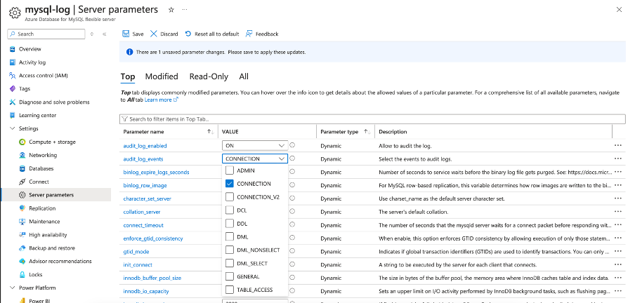 Audit Logs for Azure Database for MySQL flexible server