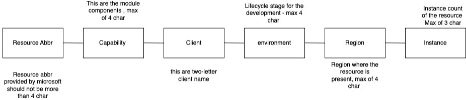| Resource abbreviation | An abbreviation that represents the type of Azure resource or asset. This component often is used as a prefix or suffix in the name |
